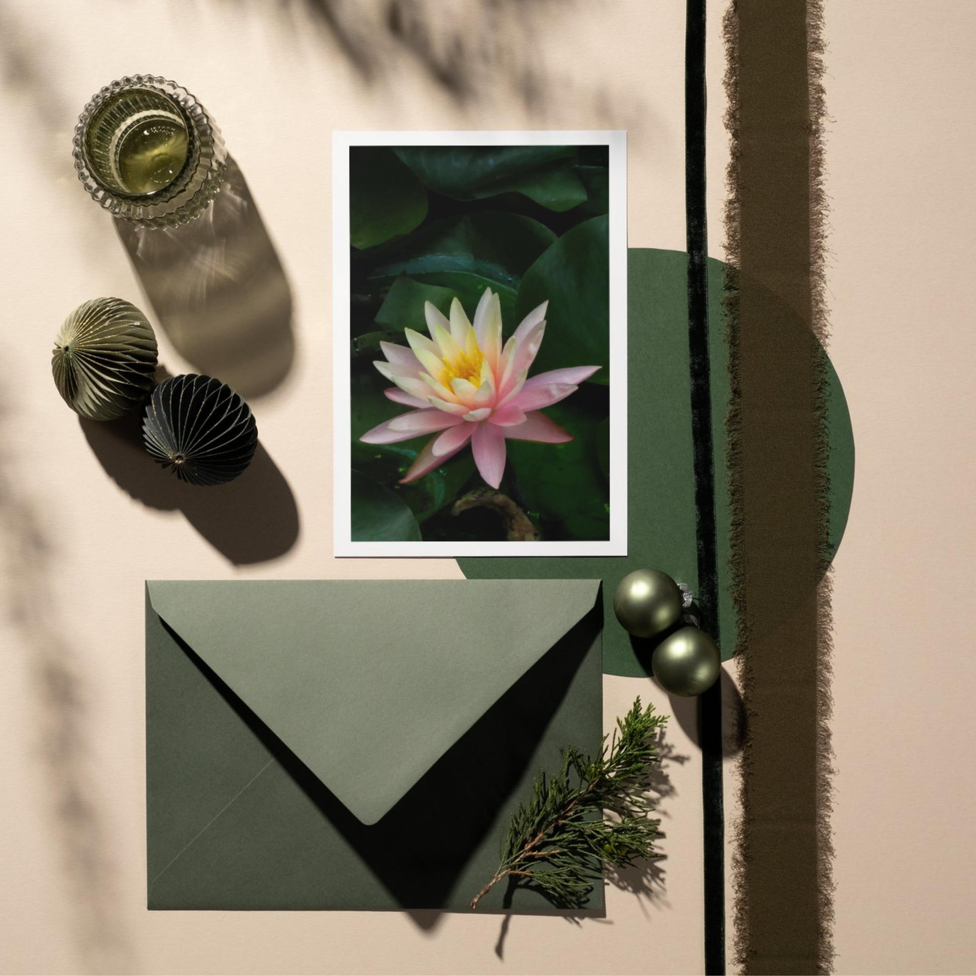 Art pieces are printed on either glossy or matte/luster paper, using archival-quality inks, and include matting. Greeting cards and postcards are offered on glossy or linen matte (true matte) paper and come with envelopes. Every print is sealed with a protective clear coating.