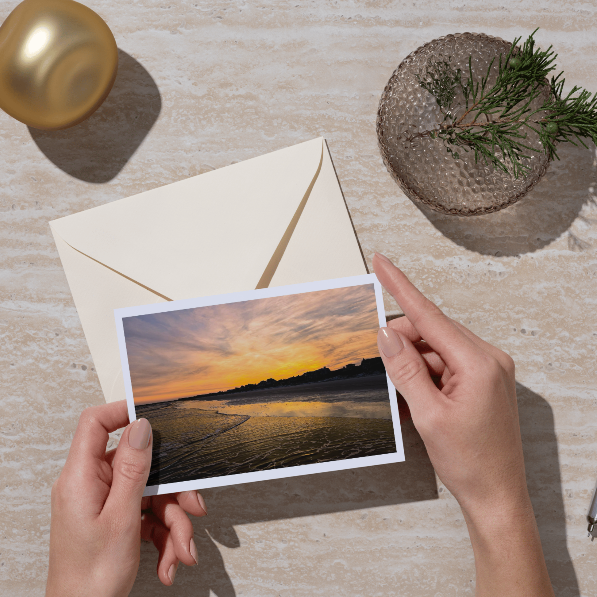 Art pieces are printed on either glossy or matte/luster paper, using archival-quality inks, and include matting. Greeting cards and postcards are offered on glossy or linen matte (true matte) paper and come with envelopes. Every print is sealed with a protective clear coating.